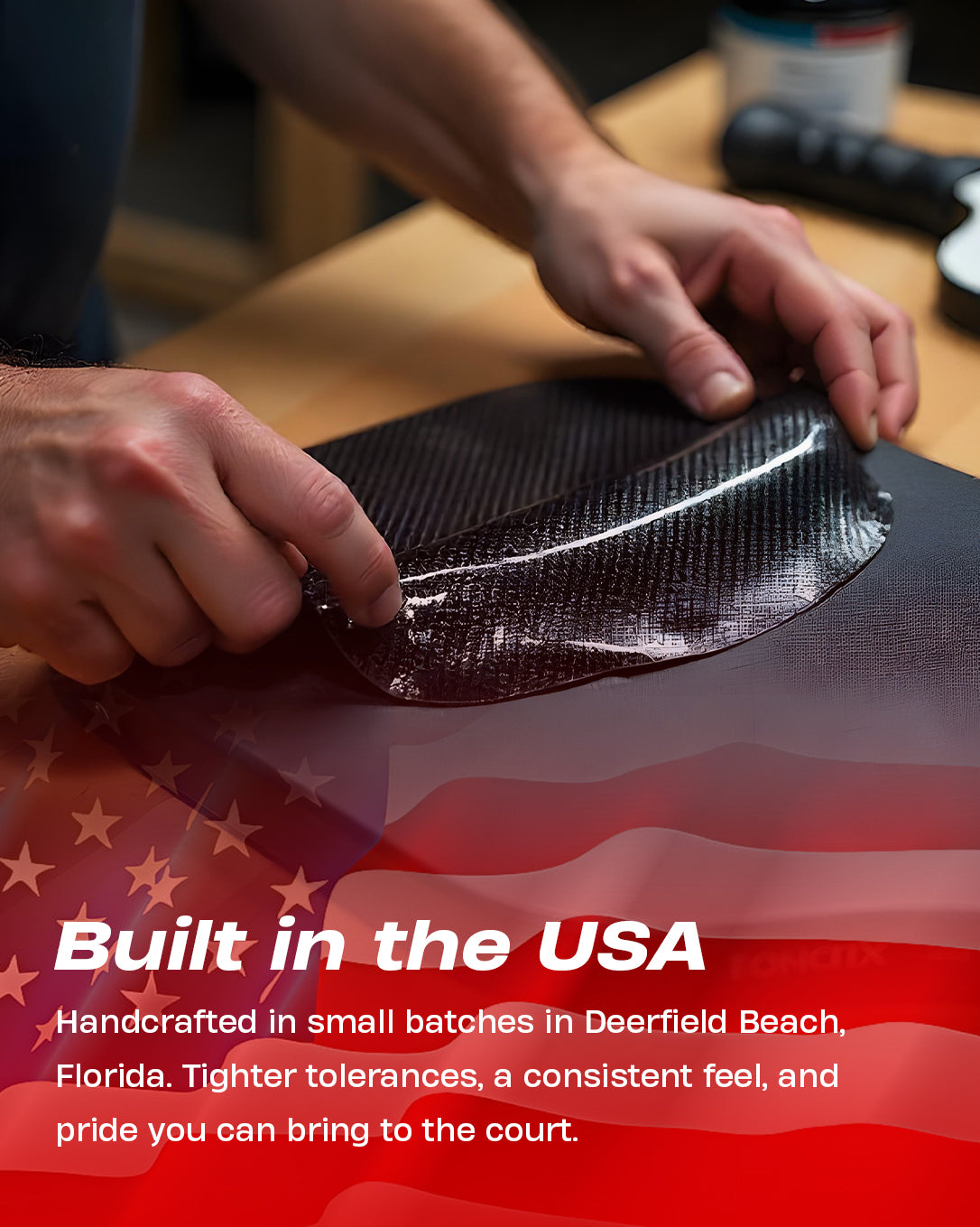 Frustrated by the lack of high-performance materials in existing paddles, Tague set out to build something better. Today, we design and build every paddle right here in the USA, using advanced composite tech to deliver unmatched feel, power, and precision on the court.
