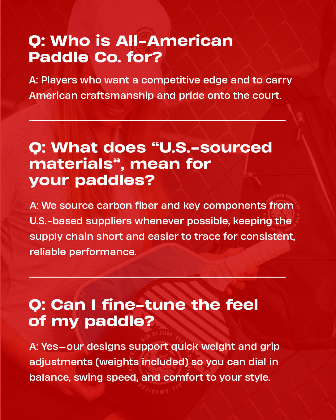 Drawing from his extensive experience in composite construction, he took a deep dive into how large-scale paddles are manufactured. He quickly saw that he had access to cutting-edge composite systems and structures that, to his knowledge, no one else in the industry had considered. Determined to innovate, he built a carbon fiber prototype and put it to the test. The result? A paddle that elevated his game and gave him a distinct advantage on the court. With this breakthrough, All-American Paddle Co. was born.
